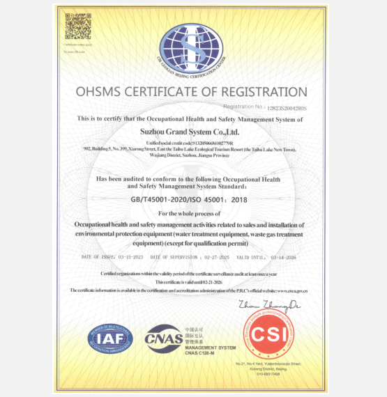 職業健康安全管理體系認證證書 ISO45001